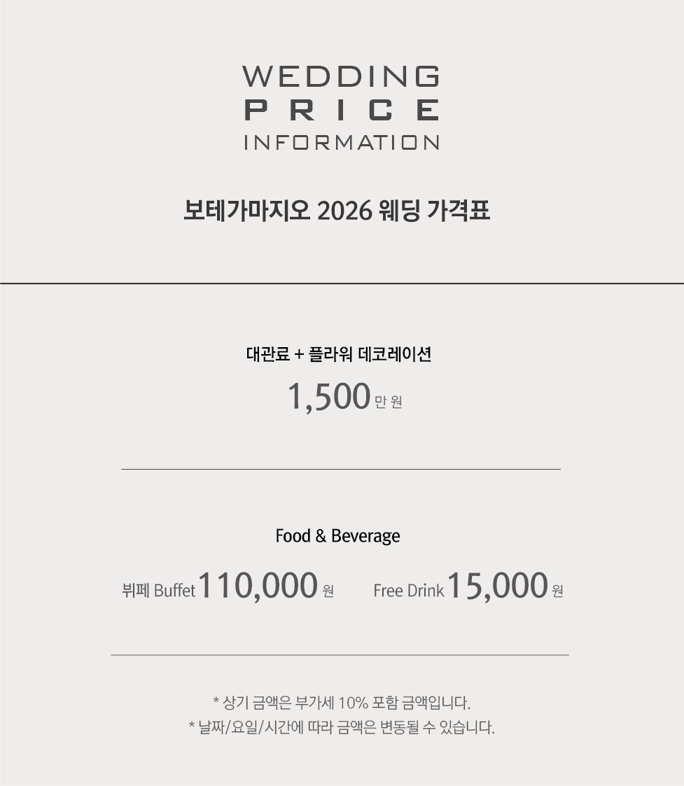 보테가마지오 웨딩 가격정보를 확인하세요.